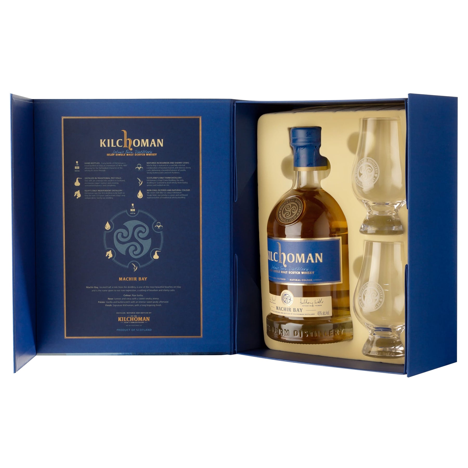 Kilchoman Islay's Farm Distillery - eine Whisky-Manufaktur, die alle Produktionsschritte vom Anbau der eigenen Gerste über das Mälzen, Destillieren, Reifen und Abfüllen selbst vor Ort durchführt - unabhängig und einzigartig in Schottland - "from barley to bottle 100% Islay". Qualität vor Quantität - lange Fermentation, schonende Destillation, beste Fassqualität sind dabei selbstverständlich.Die Vision von Gründer Anthony Wills, Whisky traditionell wie vor 150 Jahren herzustellen, und die Expertise von Dr. Jim Swan münden in dem was Kilchoman heute ist - ein außergewöhnlicher, hochwertiger Islay Single Malt.